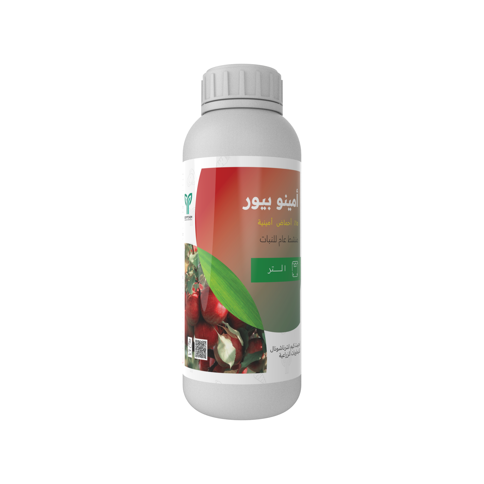 أمينو بيور يحتوى على عديد من الأحماض الأمينية نباتية المصدر فى صورة سائلة سهلة الامتصاص والانتقال داخل النباتات. يستخدم خلال مراحل النمو المختلفة لزيادة كفاءة عملية البناء الضوئى وتحفيز النمو الخضرى والجذرى، وزيادة تحمل النباتات للاجهادات البيئية (الحرارة – الصقيع – الملوحة – الجفاف).