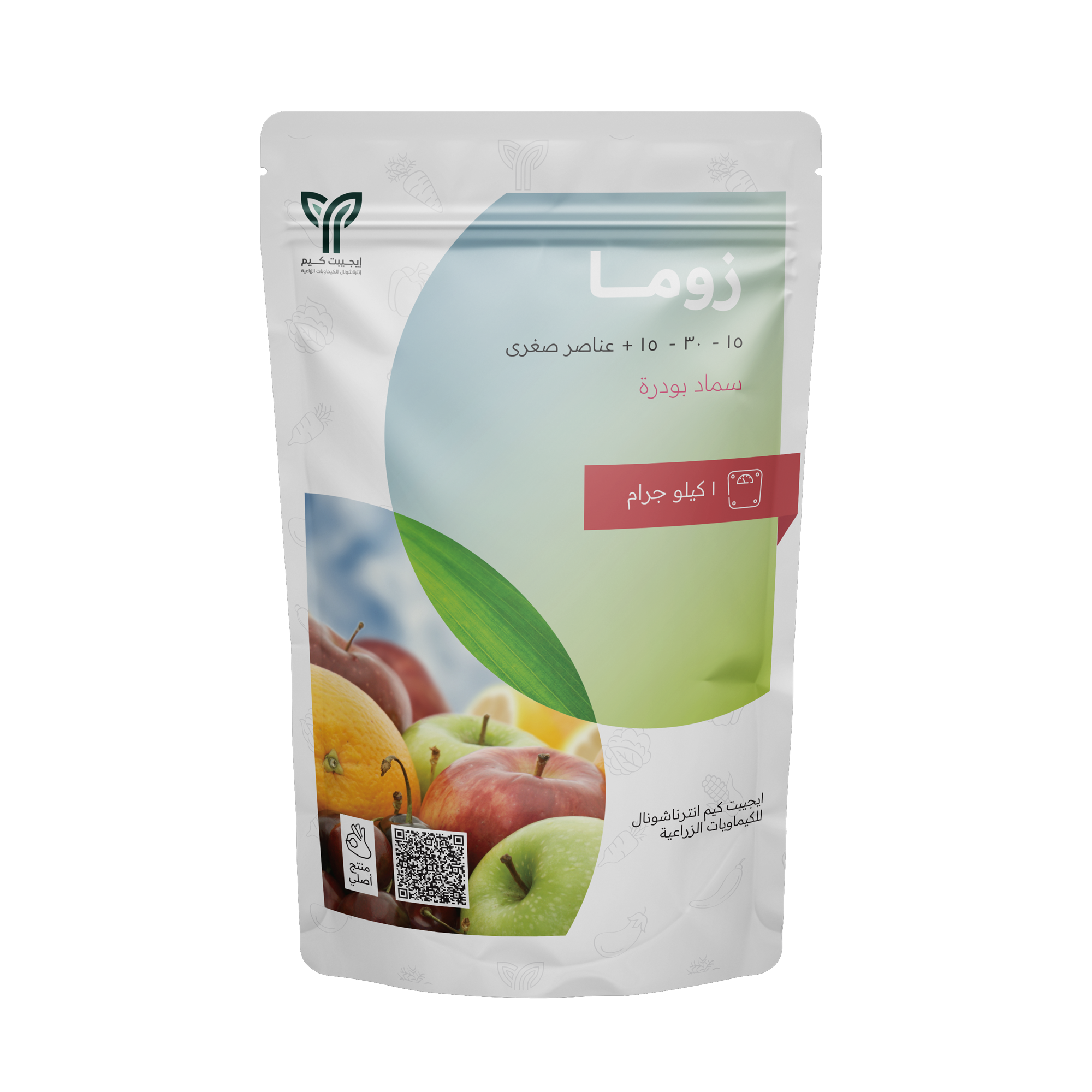 زوما سماد ذو كريستالات زرقاء، تركيبة متنوعة من العناصر الغذائية الضرورية لتكوين مجموع جذري قوي. يعمل كمحفز قوى لانتشار المجموع الجذرى وتحسين كفاءة الجذور لامتصاص الماء والعناصر الغذائية لاحتواءه على الفوسفور علاوة على البورون الذى يقوم بتنشيط انقسام الخلايا وتطور الجذور وبناء الجدران الخلوية. يحفز النشاط الانزيمى بالنباتات وتكوين بعض الفيتامينات مثل فيتامين B وفيتامين C والتى تعمل على زيادة الانقسامات المرستيمية مما ينشط عملية من التجذير وتسريع النمو. ينشط التزهير ويحسن من عقد الثمار وتحسين صفات الجودة.